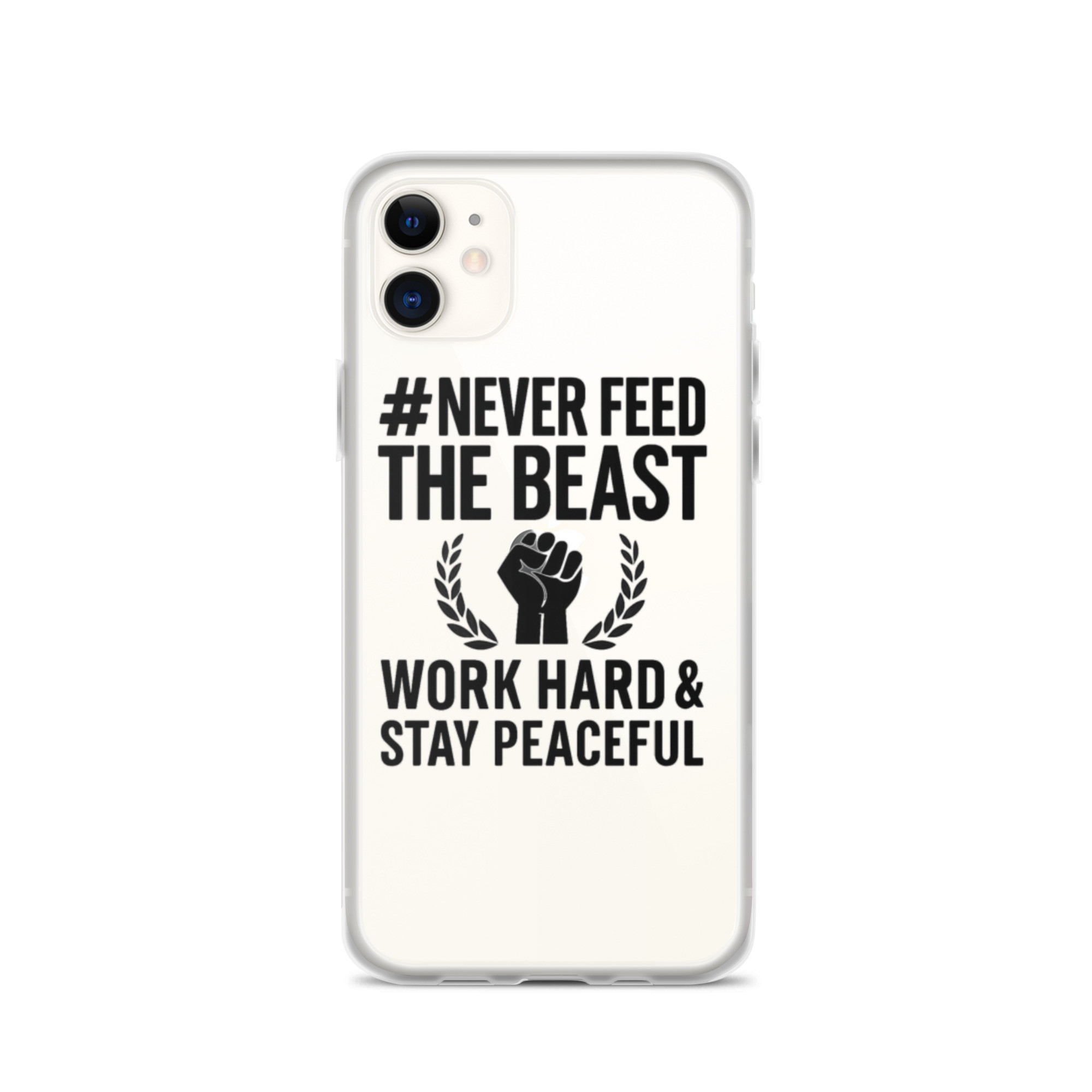 #neverfedthebeast Work Hard & Stay Peaceful brand on white glossy mug