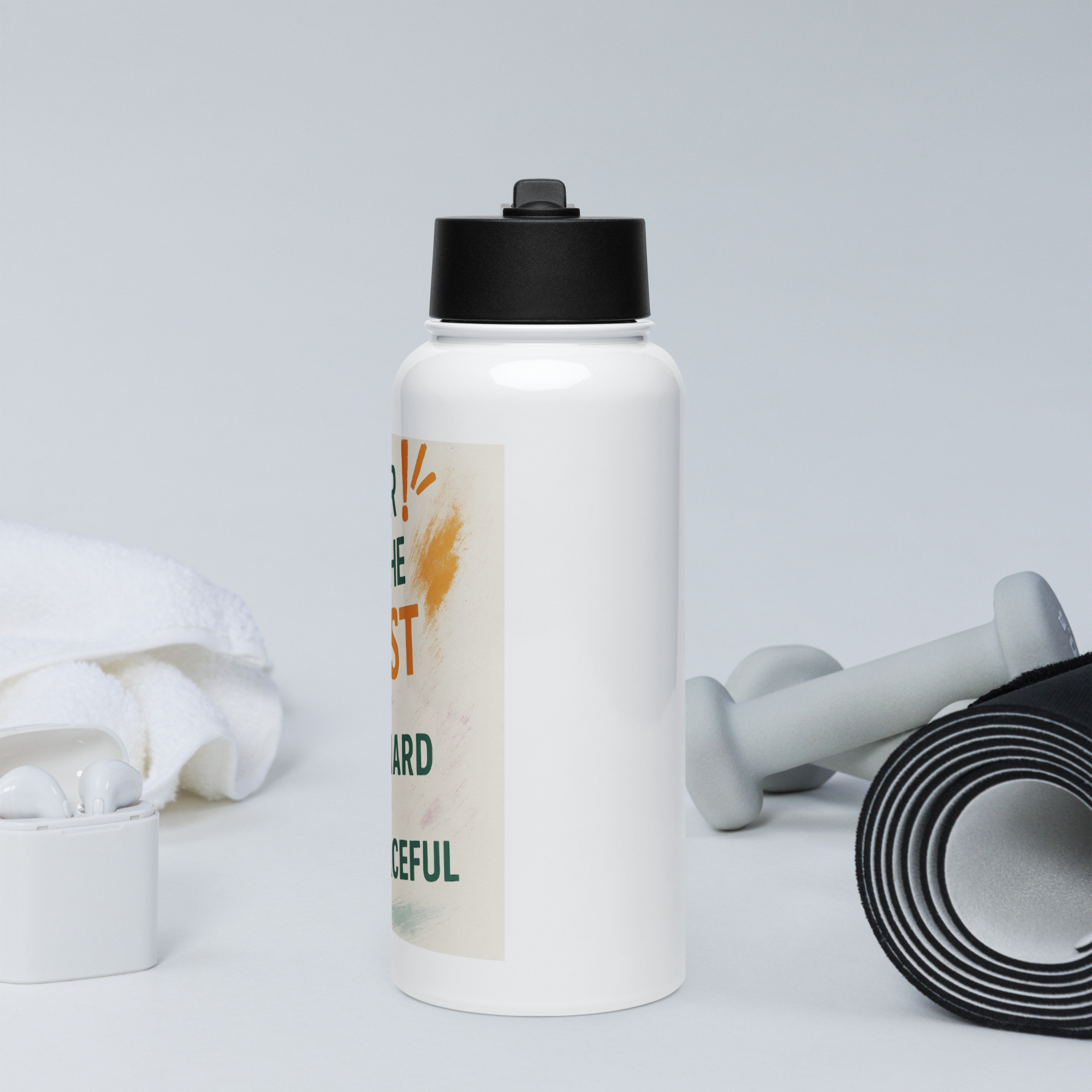 #neverfedthebeast Stainless steel water bottle with a straw lid